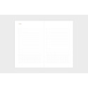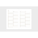 This calendar book has a solid hardcover covered with high-quality paper. The print inside is made with metallic copper paint. Inside there is a weekly layout, as well as pages with an annual and monthly schedule. Weekly spreads have a convenient layout with a weekly schedule on the left and a place for notes on the right. The calendar is made in a handy format. The paper inside is warm white and pleasantly smooth.