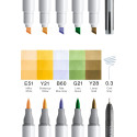 They stand out with a slim, matte design that ensures a comfortable grip. Copic ciao markers are especially appreciated by illustrators, designers, hobbyists, and craft enthusiasts. The markers can be refilled with ink and their tips can be replaced.