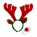 Christmas headband with reindeer horns along with a nose on an elastic band.