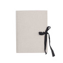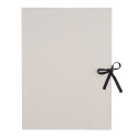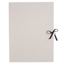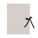 The grey drawing folder made of sturdy 450 g/m² cardboard is perfect for storing, organizing, and transporting documents and drawings. It protects your work from damage and makes it easy to carry, while the neutral color allows for personal decoration or labeling to give it an individual touch; the folder is tied with a black ribbon that adds elegance and ensures secure storage of the contents.
