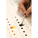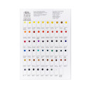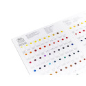 This hand-painted Color Dot card contains all 109 colors from Winsor & Newton's Professional Watercolor paint range. Small dots of dried paint have been placed on a sheet of watercolor paper, which turn into watercolor paint when exposed to water. Dot Cards serve as color samples to help you choose your favorite colors from the entire range of Professional Watercolor paints. The card shows the batch number of each color, its durability, opacity, lightfastness and whether the color is granulating.