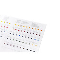 Activate the paint with a wet brush, then paint directly on the fields marked with the name and number, so that you experience the variety of each color. Once dry, the Dot Card serves as your own original color card, as well as an aid in selecting and purchasing new paint shades.