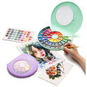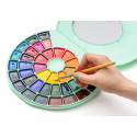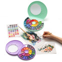 The paints are highly pigmented, activate quickly with water, and allow you to achieve clean, vivid shades. Thanks to their soft texture, they are easy to pick up with a brush and work perfectly for both detailed painting and covering larger areas. The palette includes a wide range of colors – from basic tones to pastels and deeper shades – giving beginners and hobbyists plenty of creative possibilities. The set is compact, convenient, and an excellent choice for everyday watercolor projects. The paints are non-toxic and solvent-free.