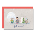 Kartka okolicznościowa Paperwords Byle razem! to ciepła i radosna propozycja, która przypomina o tym, co w święta najważniejsze – bycie razem. Utrzymana w uroczej, akwarelowej stylistyce przedstawia grupkę zimowych przyjaciół: dziewczynkę, myszkę, pingwina i sympatycznego stworka niosącego choinkę. W tle widać igloo, a cała scena otulona jest śniegiem i zimową aurą.