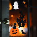 Naklejki żelowe na szybę Boo z dynią, nietoperzem, nawiedzonym domem, dynią i duszkiem dodadzą mrocznego charakteru każdemu wnętrzu.