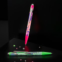 Długopis wyposażono w mechanizm przyciskowy oraz wkład Goliath w kolorze czarnym (M), który wystarcza na zapisanie do 600 stron A4. Całość dopełnia metalowe etui z holograficznym nadrukiem, idealnie oddające awangardową estetykę kolekcji.