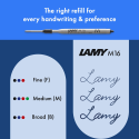 Długopis wyposażono w wkład kulkowy LAMY M 16 w rozmiarze M w kolorze czarnym, który zapewnia płynne i precyzyjne pisanie. Idealny do notatek, szkiców, szkół i biura.
