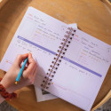 Prosty, jednostronicowy układ pozwala szybko zanotować najważniejsze informacje, dzięki czemu możesz w każdej chwili wrócić do wcześniejszych tytułów. To doskonałe narzędzie dla uczestników klubów książki, do dzielenia się rekomendacjami oraz obserwowania własnych nawyków czytelniczych na przestrzeni czasu. Dodatkowo znajdziesz w nim miejsce na stworzenie listy książek do przeczytania – z inspiracji od znajomych, rodziny czy z niekończącego się feedu BookTok. Dzięki spirali notes otwiera się całkowicie na płasko – idealny także dla osób leworęcznych.