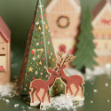 W komplecie znajduje się 24 urocze kartonowe domki i choinki, które można wypełnić drobnymi upominkami, słodyczami lub liścikami z miłymi niespodziankami. Każdy element można ozdobić według własnego pomysłu, tworząc niepowtarzalną, świąteczną dekorację. Do zestawu dołączono naklejki z numerami od 1 do 24, jutowy sznurek, zawieszki prezentowe oraz figurki do ustawienia, które dodają całości uroku i charakteru handmade.