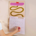 Każda strona to połączenie abstrakcyjnych kształtów, żywych kolorów i subtelnych nawiązań do stylistyki retro. Towarzyszą im sezonowe cytaty, dzięki którym każdy miesiąc wnosi na ścianę odrobinę optymizmu i koloru. Układ obejmuje okres od stycznia do grudnia 2026 roku, z przejrzystą miesięczną siatką rozpoczynającą się od poniedziałku. Obszerne pola zapewniają dużo miejsca na zapisywanie urodzin, spotkań i wszystkich spraw, które w tym czasie będą się rozwijać.