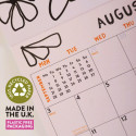 Kalendarz został zaprojektowany i wydrukowany w Wielkiej Brytanii na wysokiej jakości certyfikowanym papierze w 100% pochodzącym z recyklingu i nadającym się do dalszego recyklingu.