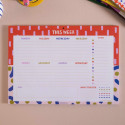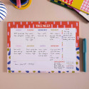 Wnieś energię i kolor do swojego tygodnia dzięki wyrazistemu planerowi tygodniowemu w formacie A4, zaprojektowanemu tak, by organizacja zadań i planów była przyjemniejsza.