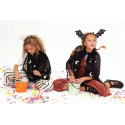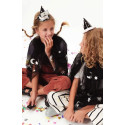 Czarna peleryna w gwiazdki i księżyce będzie doskonała na bal przebierańców, szkolne przedstawienie lub różnego rodzaju przyjęcia tematyczne dla dzieci. W połączeniu z kapeluszem i miotłą pozwoli stworzyć postać czarownicy. Gdy połączysz pelerynę ze skrzydłami, opaską i różdżką przebranie będzie doskonałe dla małej wróżki. Peleryna w połączeniu z kłami i bladym makijażem twarzy umożliwi również przebranie się za upiornego drakulę. Pelerynka będzie idealna dla dzieci w wieku od 3 do 7 lat. Została wykonana z lekkiego tiulu.
