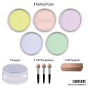 OPAKOWANIE: 5 pasteli, 3 aplikatory Soft Mini, 1 gąbka Sofft Sponge Bar, pojemniczek.