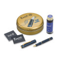 Gotowy do użycia zestaw startowy Kaweco z piórem Sport Piston Filler oraz butelką atramentu o pojemności 32 ml w kolorze Royal Blue.