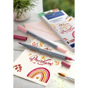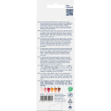 Każdy marker wyposażony jest w dwie końcówki: elastyczną, pędzelkową do płynnych, dynamicznych pociągnięć oraz cienką (0,6 mm) do konturów i detali. Tusz na bazie wody ma neutralne pH, jest bezwonny, bezkwasowy, w pełni rozpuszczalny w wodzie, a jednocześnie nie przesiąka przez papier i nie pozostawia smug. Dodatkowo, obudowa i zatyczki wykonane są w 100% z materiałów pochodzących z recyklingu, co może powodować subtelne różnice w ich kolorystyce.