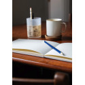 Papier w notesie jest bezkwasowy, odporny na falowanie przy użyciu farb wodnych i minimalizuje efekt przebijania. Charakterystycznym elementem szkicownika jest odkryty, zszywany bawełnianą nicią grzbiet, który nadaje mu prostą, nowoczesną formę, a jednocześnie pozwala otwierać notes całkowicie płasko na każdej stronie. Każdy egzemplarz szyty i klejony jest ręcznie przy użyciu kleju PVA na bazie wody, co gwarantuje trwałość i elastyczność.