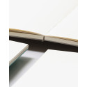 Papier w notesie jest bezkwasowy, odporny na falowanie przy użyciu farb wodnych i minimalizuje efekt przebijania. Charakterystycznym elementem szkicownika jest odkryty, zszywany bawełnianą nicią grzbiet, który nadaje mu prostą, nowoczesną formę, a jednocześnie pozwala otwierać notes całkowicie płasko na każdej stronie. Każdy egzemplarz szyty i klejony jest ręcznie przy użyciu kleju PVA na bazie wody, co gwarantuje trwałość i elastyczność.