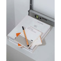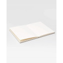 Papier w notesie jest bezkwasowy, odporny na falowanie przy użyciu farb wodnych i minimalizuje efekt przebijania. Charakterystycznym elementem szkicownika jest odkryty, zszywany bawełnianą nicią grzbiet, który nadaje mu prostą, nowoczesną formę, a jednocześnie pozwala otwierać notes całkowicie płasko na każdej stronie. Każdy egzemplarz szyty i klejony jest ręcznie przy użyciu kleju PVA na bazie wody, co gwarantuje trwałość i elastyczność.