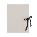 Szara teczka rysunkowa wykonana z mocnej tektury o gramaturze 450 g/m² doskonale nadaje się do przechowywania, porządkowania i przenoszenia dokumentów oraz rysunków. Chroni prace przed zniszczeniem i ułatwia ich transport, a jej stonowany kolor pozwala na własnoręczne ozdobienie lub opisanie, dzięki czemu można nadać jej indywidualny charakter; całość zamykana jest czarną wstążką, która dodaje elegancji i zapewnia bezpieczne przechowywanie zawartości.
