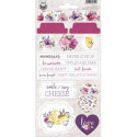 Kolekcja ta przepełniona jest grafikami pięknych kwiatów oraz liści. Znajdziemy w niej również wiklinowy fotel oraz stolik, zachęcające do chwili odpoczynku przy kubku gorącej kawy. Naklejki zostały utrzymane w stonowanej kolorystyce z przewagą różu, fioletu, szarości, beżu oraz koloru musztardowego. Naklejki mają wyjątkowo wszechstronne zastosowanie. Możesz ozdobić nimi albumy, kartki okolicznościowe, a także stworzyć dekorację pięknie wyglądającą w ramce powieszonej na ścianie. Będą także idealne do projektów scrapbookingowych o tematyce urodzinowej, ślubnej oraz dziecięcej.