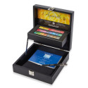 OPAKOWANIE: 24 farby, ściereczka z logo Sennelier, 2 pędzelki Soft Aqua, blok akwarelowy 300 g/m², 10 x 15 cm.