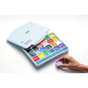 Taki rodzaj opakowania chroni farby przed wysychaniem, utrzymuje ich świeżość i sprawia, że są zawsze gotowe do użycia. Farby mają gęstą, kremową konsystencję, dzięki czemu łatwo się rozprowadzają, a intensywne napigmentowanie pozwala uzyskać wyraziste krycie już przy pierwszej warstwie. Bogata paleta kolorów daje ogromne możliwości twórcze – od prostych ilustracji po rozbudowane obrazy i projekty artystyczne. Farby można swobodnie mieszać, uzyskując szeroką gamę odcieni, a po wyschnięciu łatwo reaktywować wodą, co znacznie wydłuża czas ich użytkowania. Farby są nietoksyczne i bezrozpuszczalnikowe.
