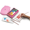 Taki rodzaj opakowania chroni farby przed wysychaniem, utrzymuje ich świeżość i sprawia, że są zawsze gotowe do użycia. Farby mają gęstą, kremową konsystencję, dzięki czemu łatwo się rozprowadzają, a intensywne napigmentowanie pozwala uzyskać wyraziste krycie już przy pierwszej warstwie. Bogata paleta kolorów daje ogromne możliwości twórcze – od prostych ilustracji po rozbudowane obrazy i projekty artystyczne. Farby można swobodnie mieszać, uzyskując szeroką gamę odcieni, a po wyschnięciu łatwo reaktywować wodą, co znacznie wydłuża czas ich użytkowania. Farby są nietoksyczne i bezrozpuszczalnikowe.